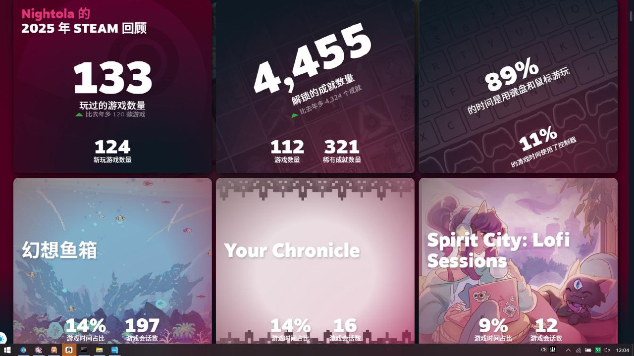 游戏的话我好像也没有特别多想说的,不过换笔记本确实成功让我开始把电脑的使用频率给提高了很多。看STEAM的年度总结就知道我玩了不少。虽然基本上玩的都不是大作,但我玩的开心,也成功回顾了弹丸论破1。可能也是今年玩够了吧。至少单机游戏是想什么时候玩就什么时候玩。